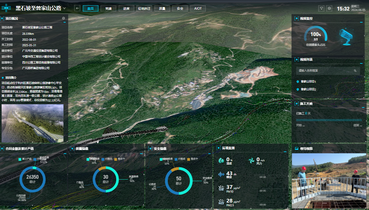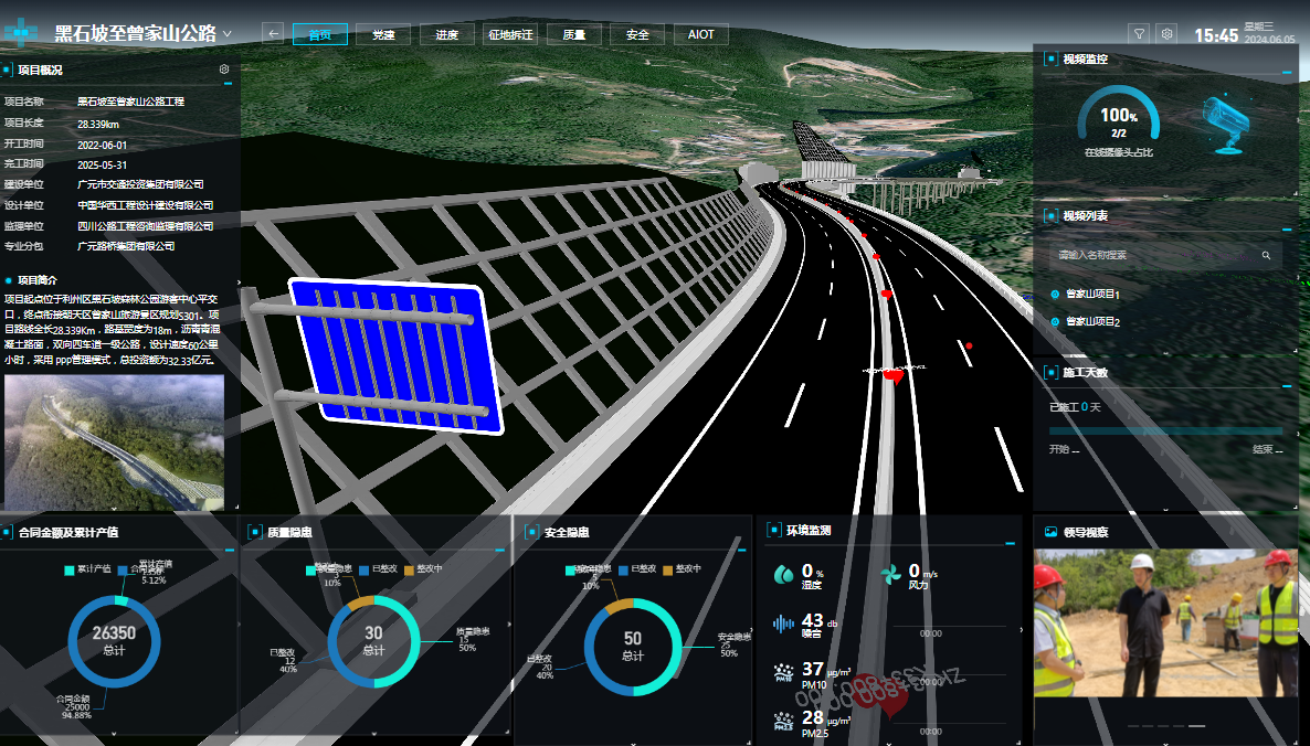 為強(qiáng)化風(fēng)險管控,黑曾路項目部引入智慧信息化可視管理平臺,綜合運(yùn)用BIM、GIS、物聯(lián)網(wǎng)、大數(shù)據(jù)、人工智能、無人機(jī)等先進(jìn)技術(shù),構(gòu)建基于BIM+GIS+IOT+AI+PM的智慧工地平臺,實(shí)現(xiàn)進(jìn)度、質(zhì)量、安全等全方位智能化管控。
